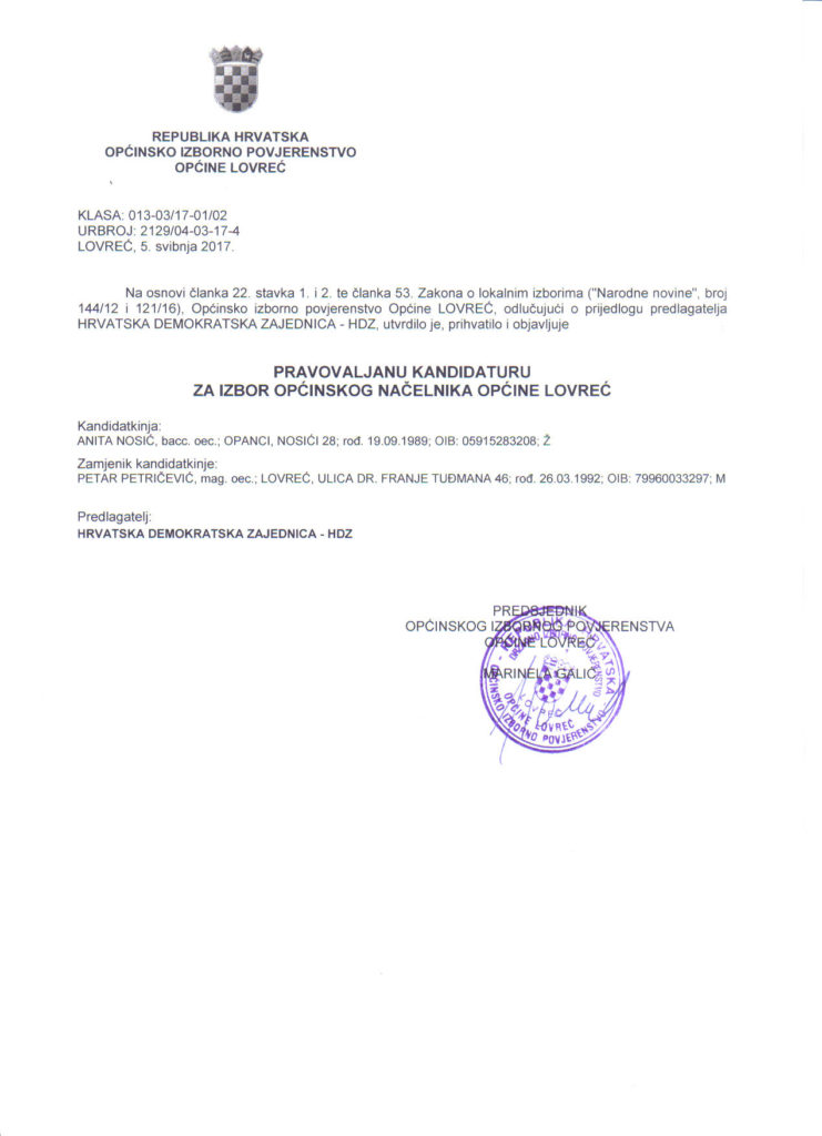 Kandidacijske liste/kandidature, zbirne liste i rješenje o određivanju biračkih mjesta na području Općine Lovreć View Larger Image Anita Nosić2017-07-08T11:43:39+01:00 Podjeli s drugima FacebookTwitterEmail Related Posts Sretan i blagoslovljen Uskrs 20. travnja , 2025 | 0 Comments Radni sastanak u Vladi RH 15. travnja , 2025 | 0 Comments Dodijeljena Državna nagrada tehničke kulture “Faust Vrančić” za 2024. godinu 14. travnja , 2025 | 0 Comments Križni put Studenci – Ričice – Imotski 9. travnja , 2025 | 0 Comments