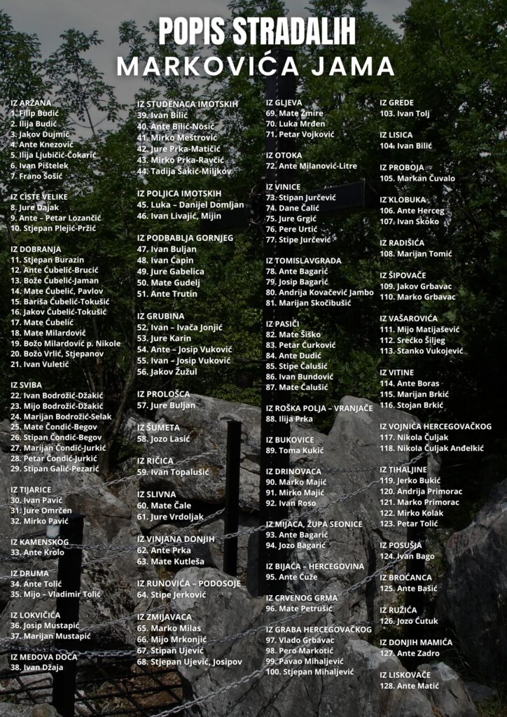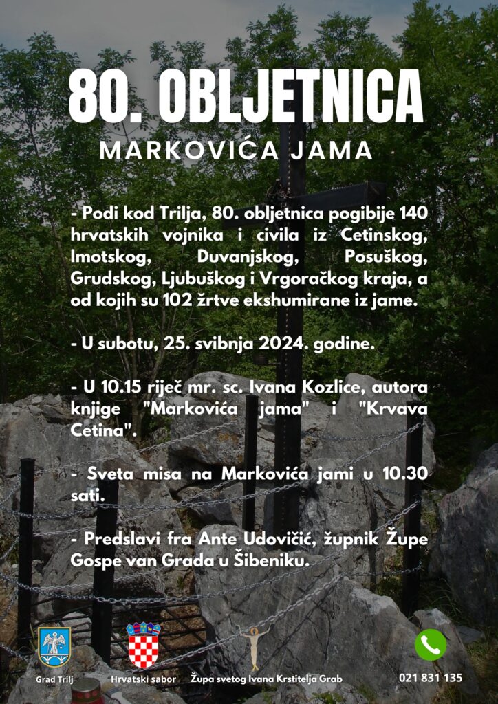 U subotu, 25. svibnja 2024. godine, u mjestu Podi pokraj Trilja, na Markovića jami obilježit će se, pod pokroviteljstvom Hrvatskog sabora, 80. obljetnica pogibije 140 pripadnika hrvatske vojske i civila krajem svibnja 1944. godine. Ubijeni hrvatski vojnici podrijetlom su iz cetinskog, imotskog, duvanjskog, posuškog, grudskog, ljubuškog, vrgoračkog kraja.